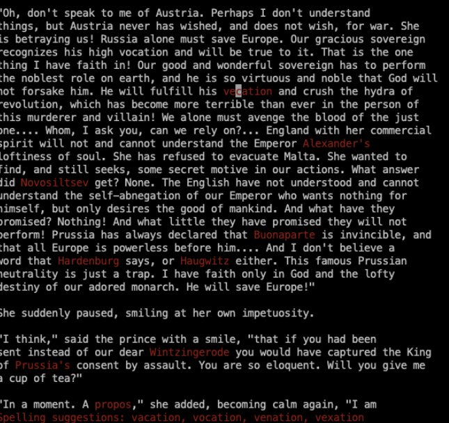Text editor allowing for spelling suggestions, keyboard actions, and document handling.